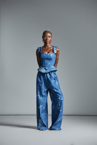 Elevate your style with the Sierra Corset & Wide-Leg Set a daring yet refined ensemble handcrafted from hand-dyed, soft 100% denim fabric....